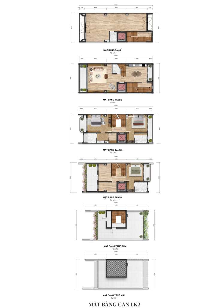 - Diện tích cơ bản: 80m2, 90m2, 100m2, 147m2, 207m2….